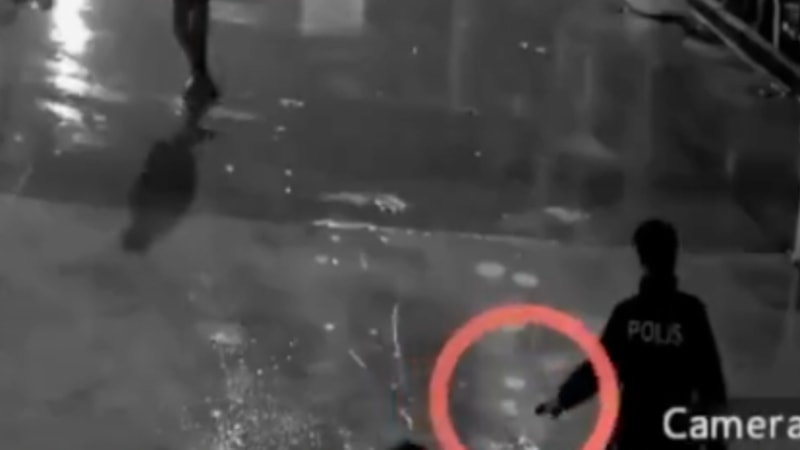 Köpeğin sahipleri olduğu tahmin edilen iş yeri önündeki şahıslar olaydan sonra polise tepki gösterdi.