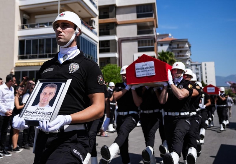 Balçova ilçesinde, karakola düzenlenen silahlı saldırıda şehit olan 1. sınıf emniyet müdürü polis başmüfettişi Muhsin Aydemir ve polis memuru Hasan Akın son yolcuğuna uğurlandı.