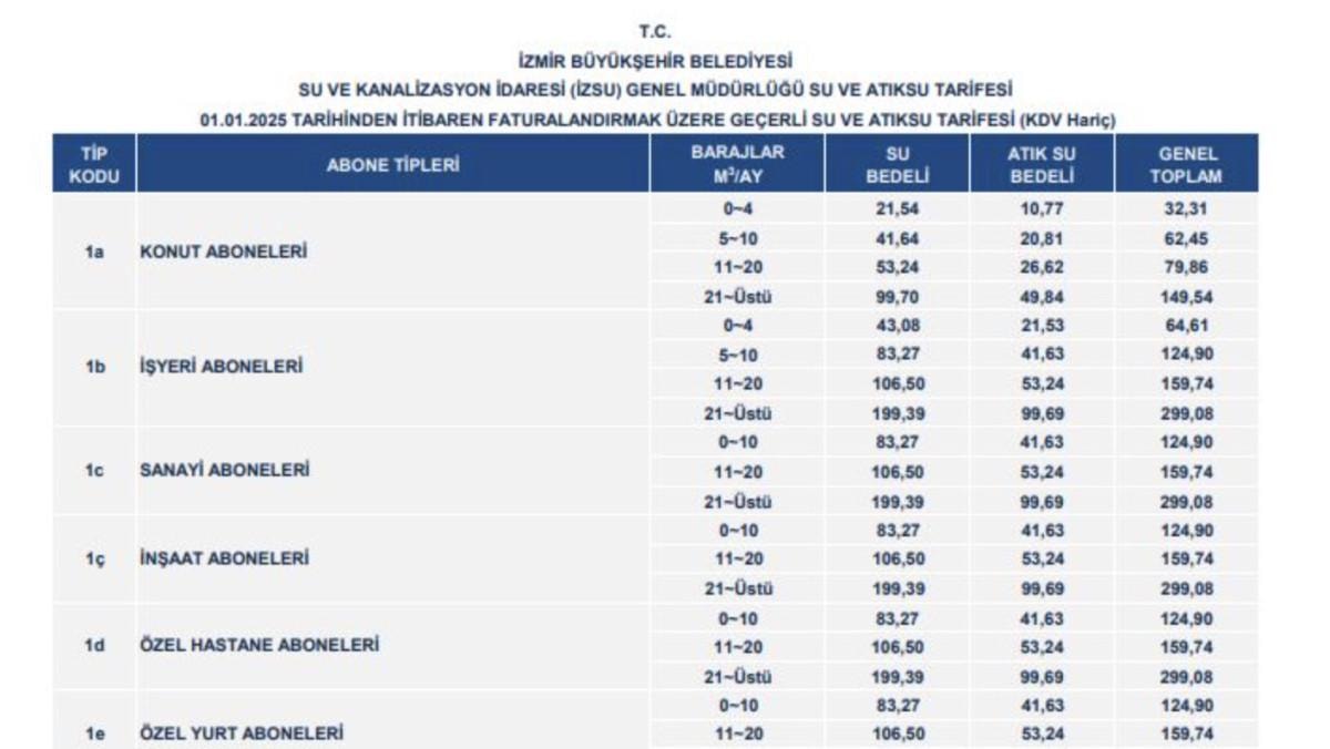 Haziran ayında İZSU Genel Müdürlüğü’nün Olağanüstü Genel Kurul Toplantısı’nda, su ve atık su tarifelerindeki ücretlerde düzenleme yapılmıştı.