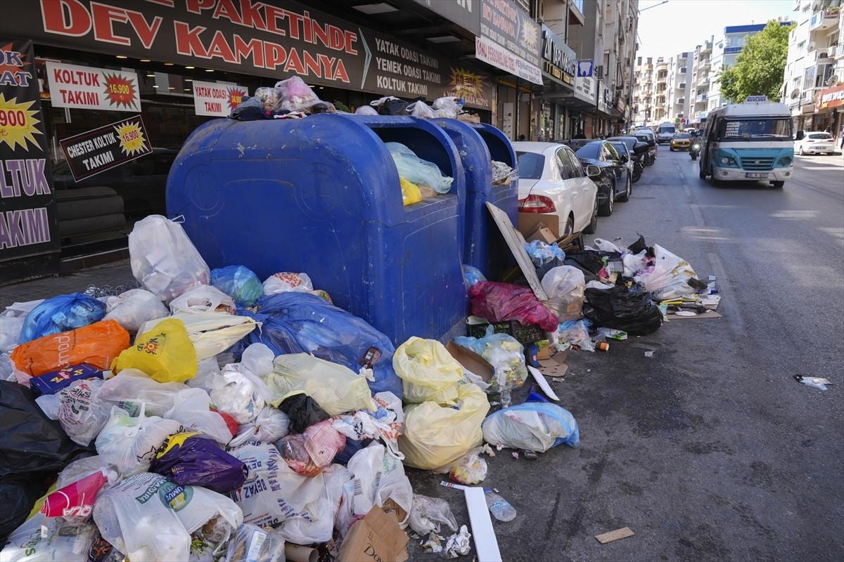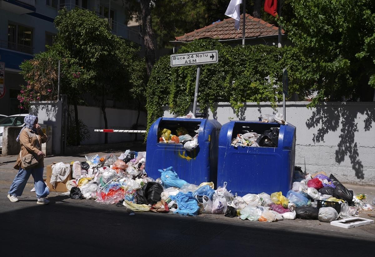 Grevin 3'üncü gününde temizlik hizmetlerinde görevli işçilerin iş bırakması nedeniyle Buca'nın bazı sokaklarında çöp yığınları ve kötü koku oluştu.