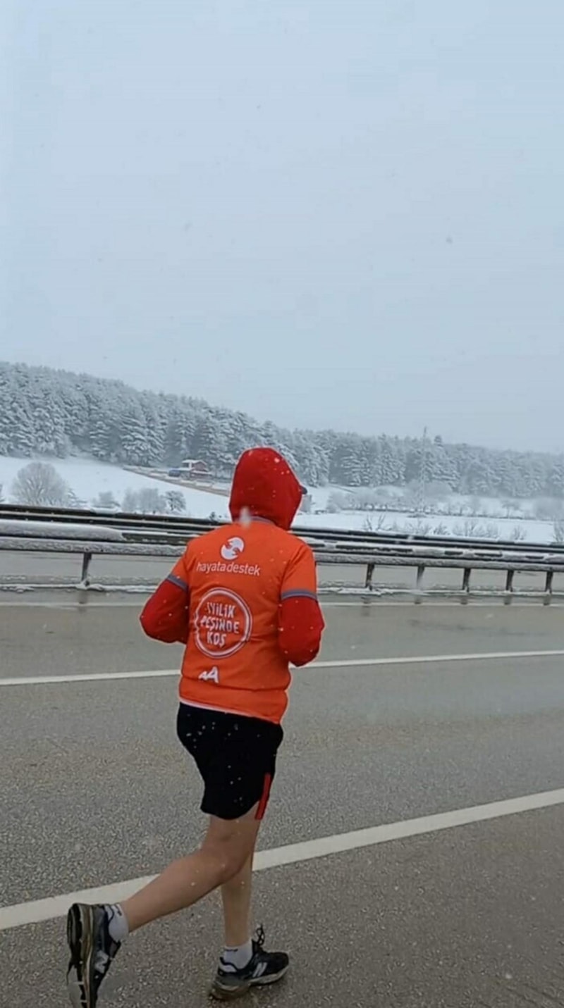 2018 yılında Van'dan İzmir'e kadar koşmuştum. Pandemi nedeniyle uzun bir ara vermiştim. Bunun ikinci etabını yapmak istiyordum. Depremin ardından doğru zaman olduğunu düşündüm. Günde ortalama bir maraton mesafesi 42 kilometre koşuyorum. Toplamda 1100 kilometre koşuyor olacağım. Hayata Destek Derneği gönüllüleri afetten etkilenen 11 şehre su tankları, hijyen pedleri ve çadır dağıtıyor. Ben de onlar için sosyal medya platformlarında, koşumla ilgili paylaşımlar yapıp kredi kartı ya da EFT yoluyla bağış topluyorum.