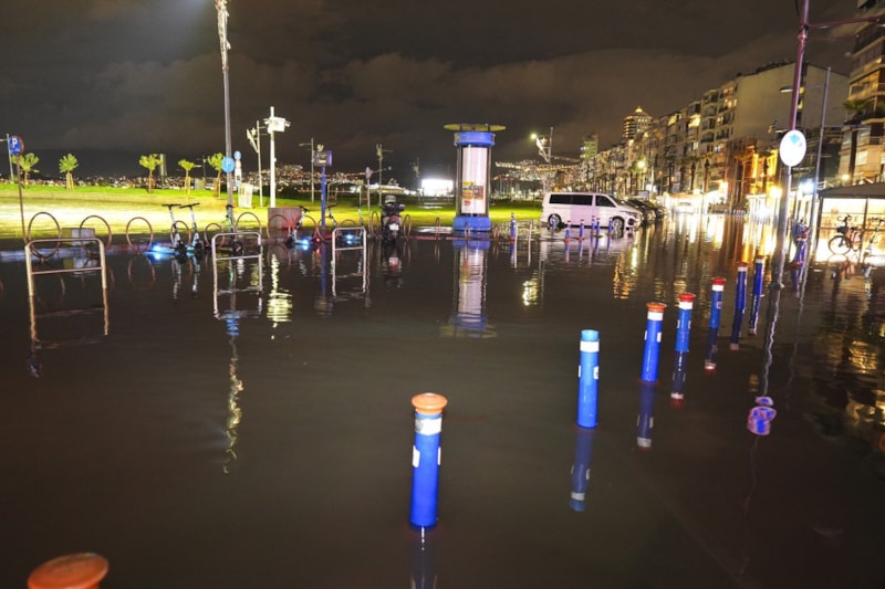 Bölgedeki su birikintilerinin tahliyesi için İzmir Büyükşehir Belediyesi ekipleri çalışmalarını sürdürüyor.