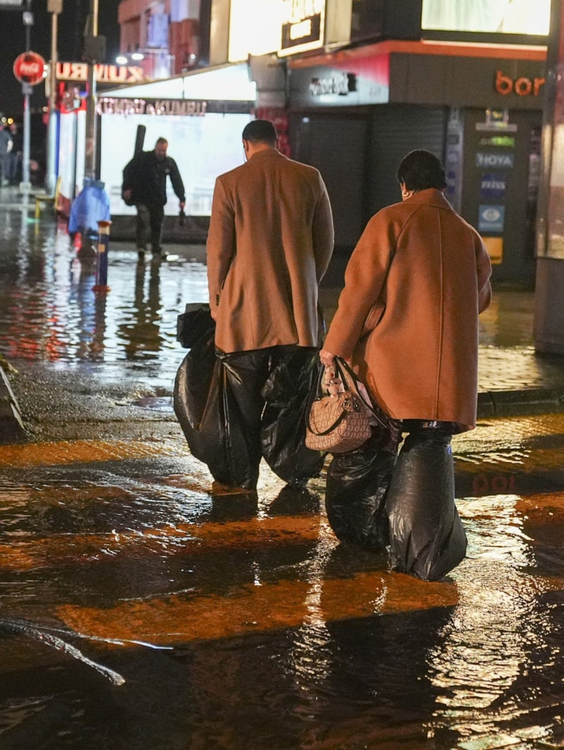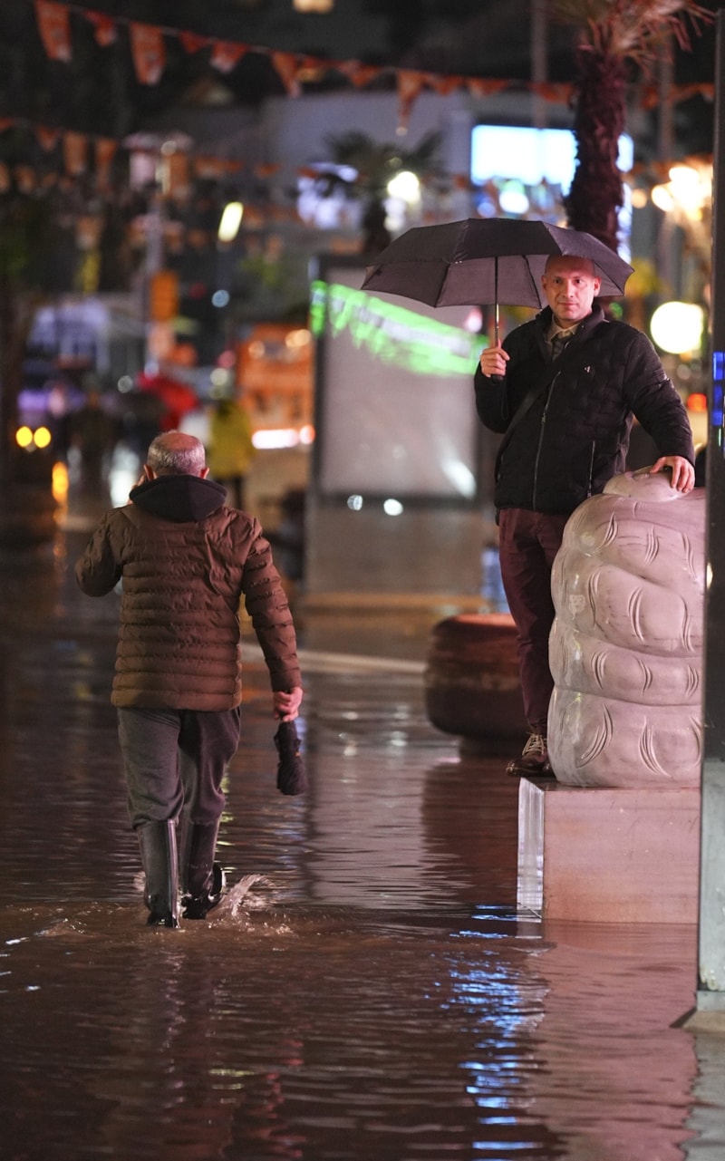 Yağış nedeniyle sürücü ve yayalar ilerlemekte güçlük çekerken, bazı araçlar suyla kaplanan yollarda kontrollü şekilde ilerlemek zorunda kaldı.