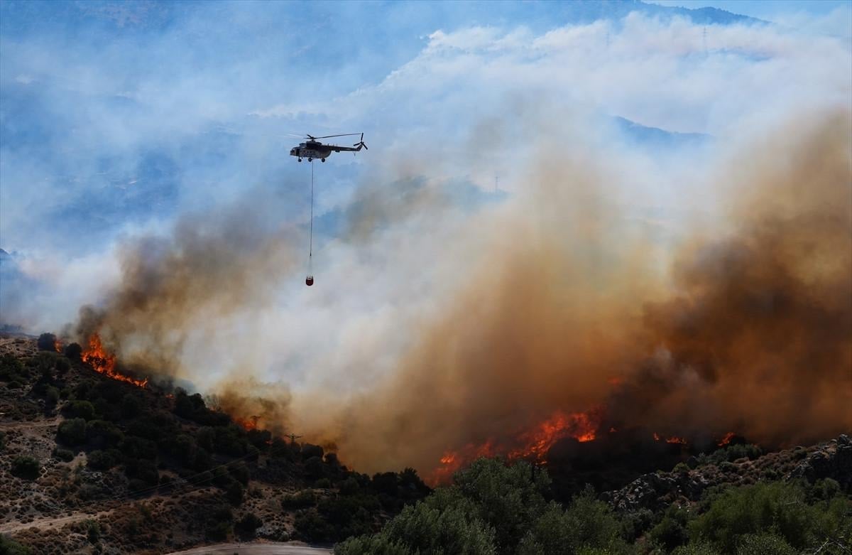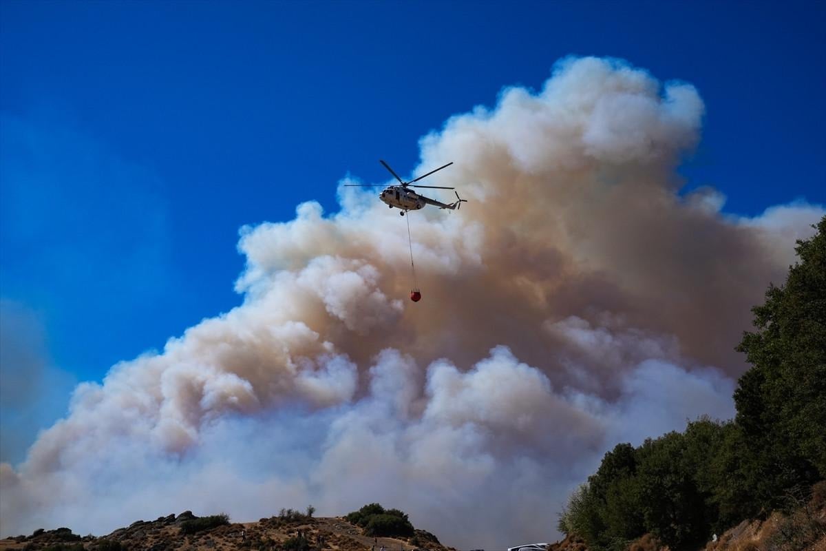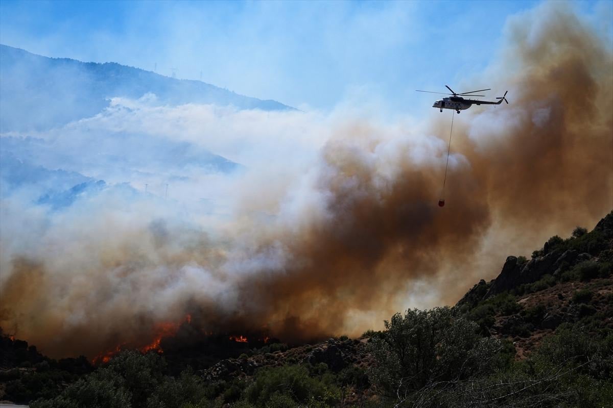 2 uçak ve 4 helikopter ile alevlere çok sayıda sorti yapıldı. Söndürme çalışmalarına havadan ve karadan sürüyor.