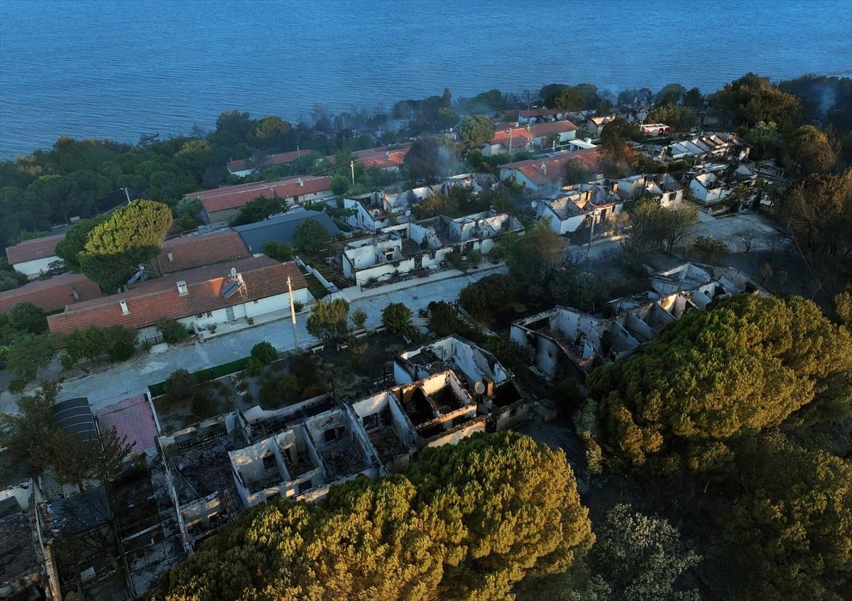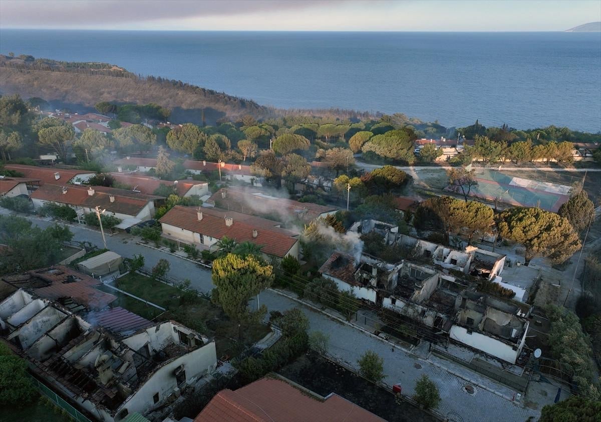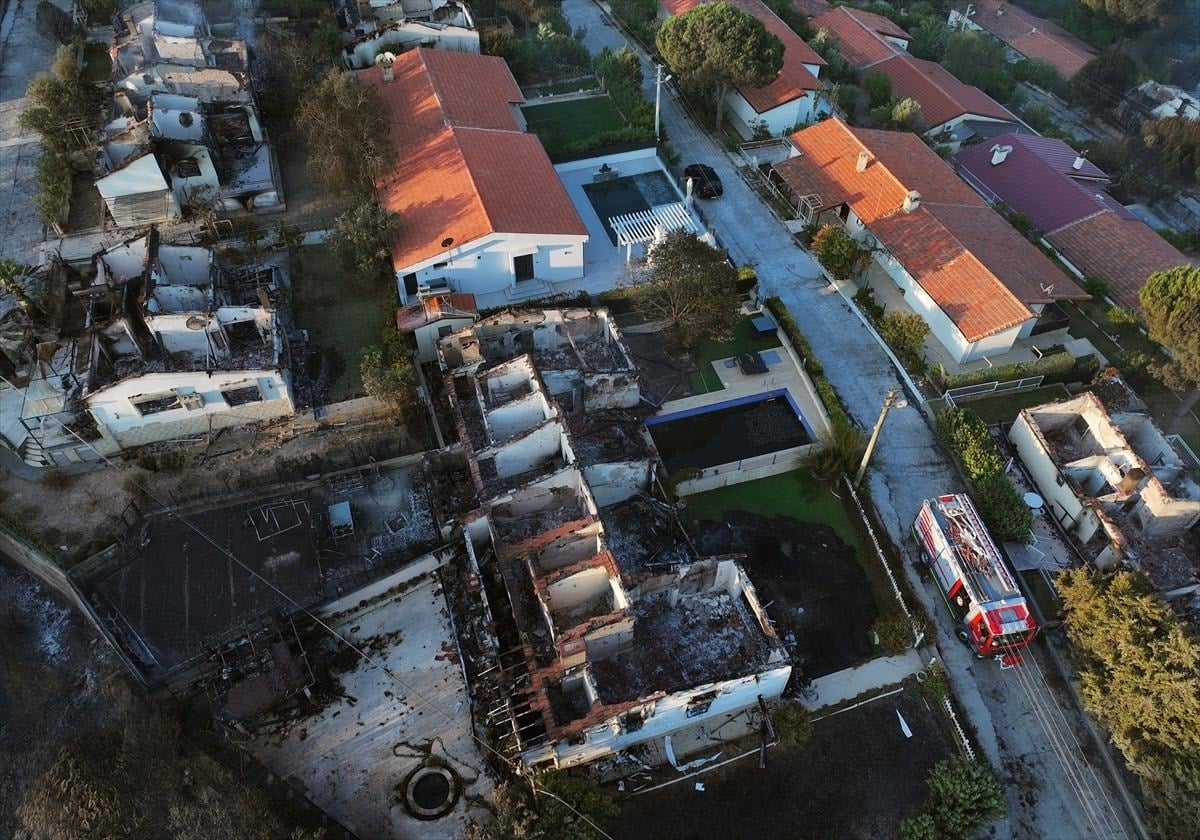 Öte yandan yangından zarar gören Doğankent Sitesi havadan görüntülendi.