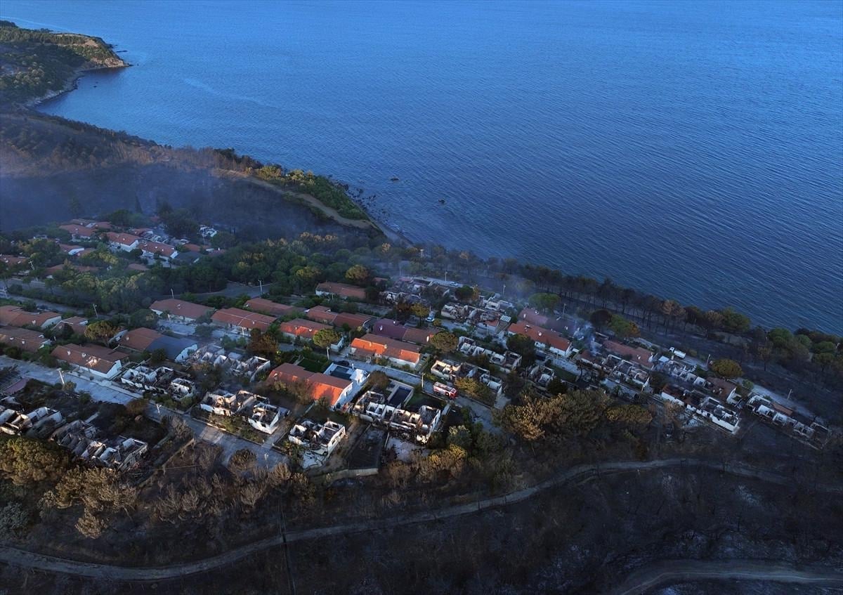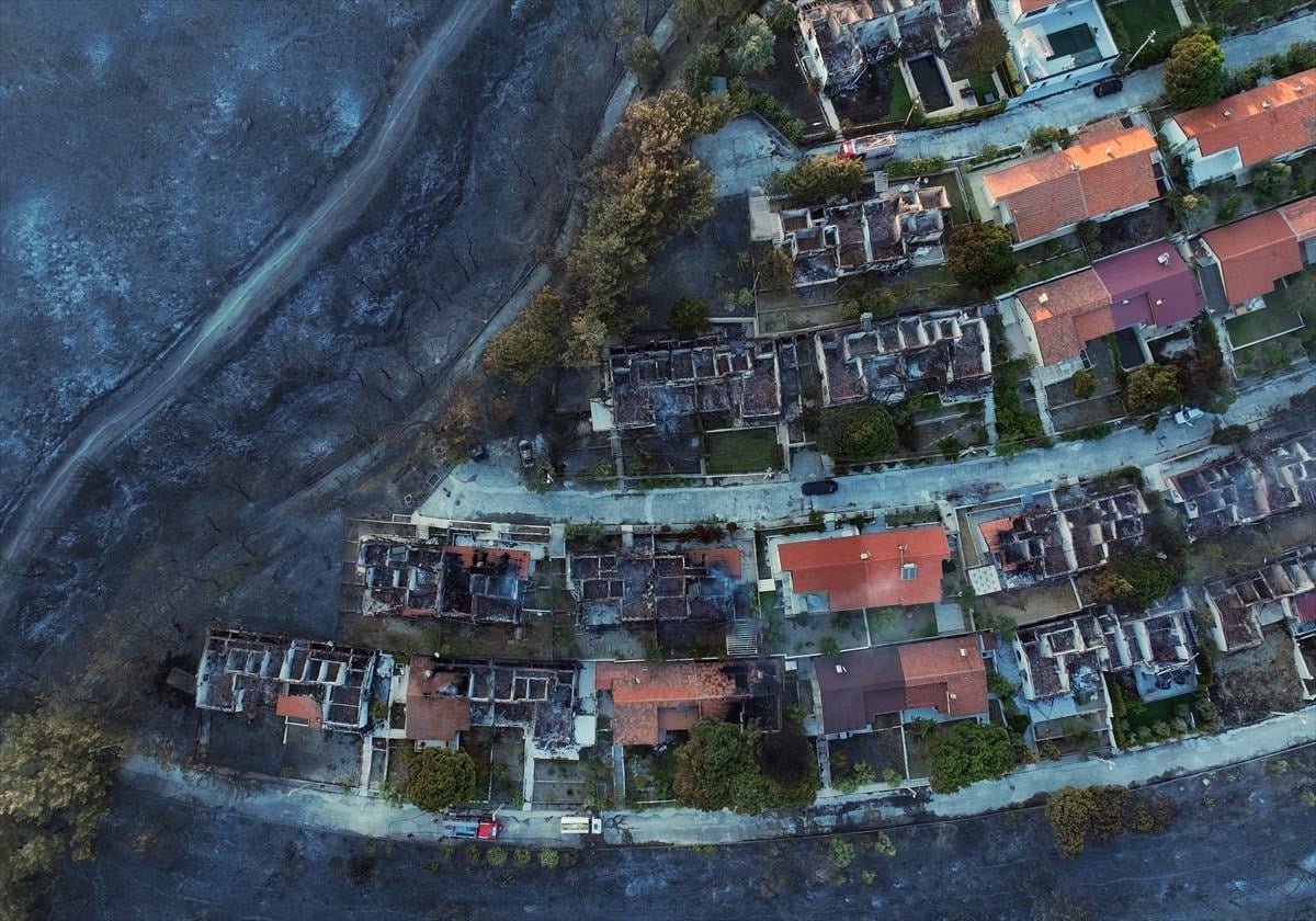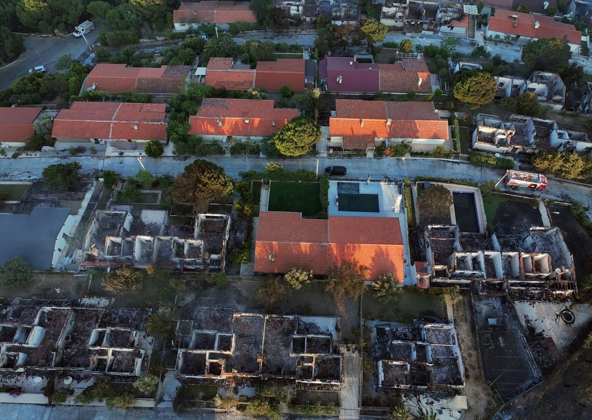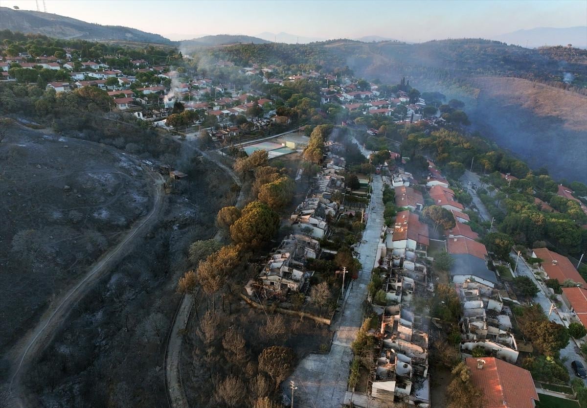 Öte yandan yangından zarar gören Doğankent Sitesi havadan görüntülendi.