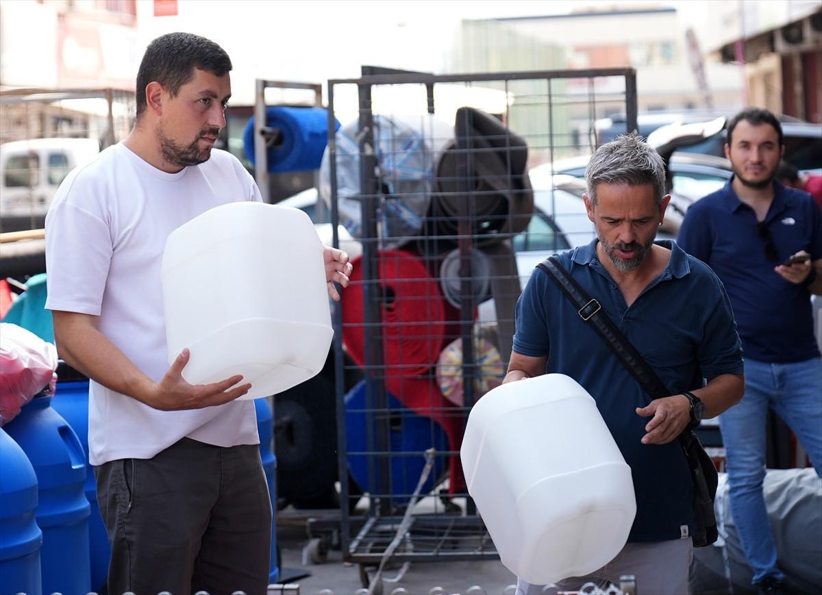 Gıda Çarşısı'nda plastik ürün toptancısı Ramazan Boğa, vatandaşın kesintilere karşı su stoku yapmak için bidon almaya başladığını söyledi.