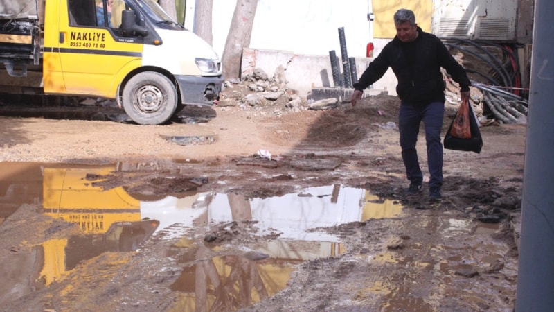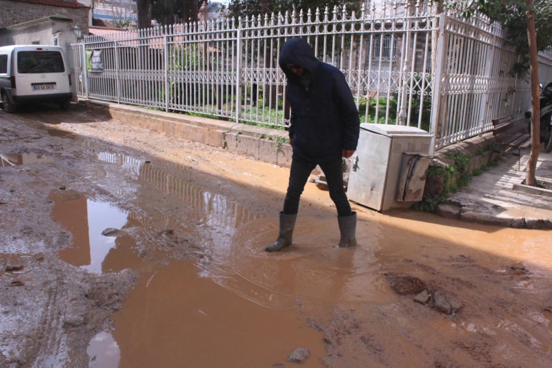 İzmir'de bulunan tarihi Kemeraltı Çarşısı esnafı, Dr. Faik Muhittin Adam Caddesi’ndeki bozuk yollara isyan etti. Esnaf, yol çalışmalarının aylardır tamamlanmadığını, yağmur yağdığında yolların göle döndüğünü söyledi.