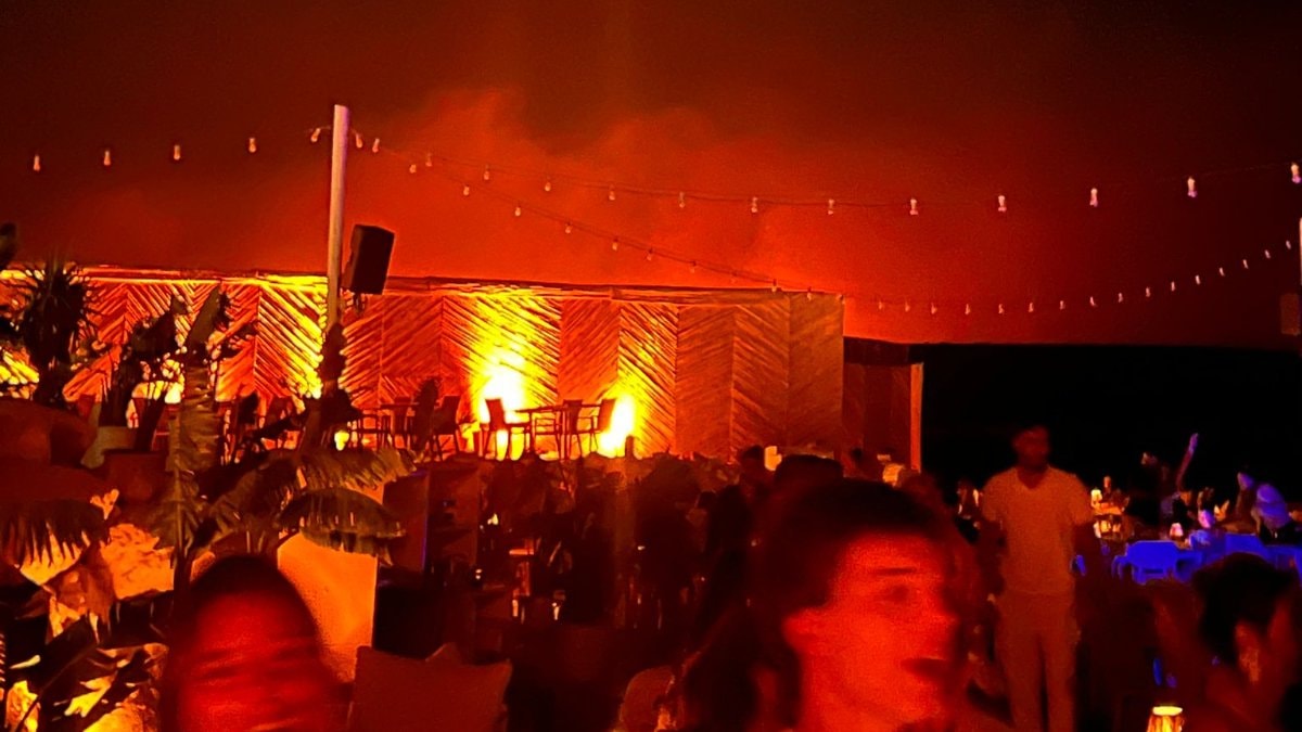 Ünlü gece kulüplerinde eğlence tam gaz devam ederken çekilen fotoğraflarda, arka planda yangının da çıkması dikkat çekti.