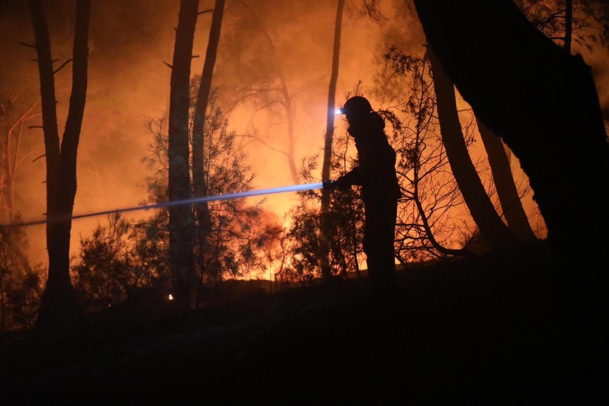 Arazözlerle alevlerin içine dalan ekipler, gece boyunca söndürme çalışmalarını sürdürdü.