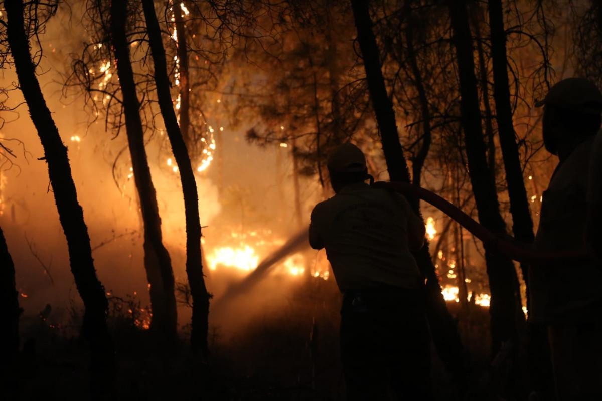 Havadan 3 uçak 11 helikopter durmaksızın alevlerin söndürülmesi için kullanılıyor.