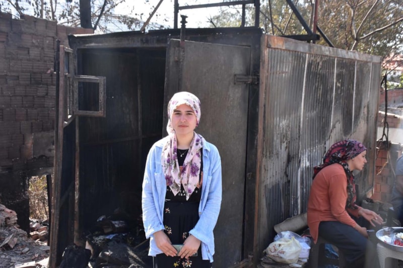 Yangın sırasında evde değildim. Annemle yeğenim vardı. Yangını Çiğli'deyken haber aldım, itfaiyeyi aradım. Geldiğimde hala itfaiye yoktu ve ev artık alev almıştı. Çok geç müdahale edildi. Çok fazla itfaiye geldi ama çok geç geldi. Buradaki 17 evin hepsi yandı. İtfaiye geldiğinde yanımızdaki ev daha yanmamıştı. Ama itfaiye onu da söndüremedi. 9 Eylül'de üniversite açılacak ama ne bir bavul var ne bavulu dolduracak eşyam ne de bilgisayarım var. Evin içindeki hiçbir şey kalmadı. Kitaplarım her şeyim gitti. O gün evden neyle çıktıysak onunla kaldık. Gecekondu mahallesi olduğu için buraların tapusu olmaz. Gelen giden tam olarak 'Eviniz yapılacak' da demiyor. Evleri yananlar şu an ya akrabalarının evinde ya yurtta ya da ortada kaldı. Hırsızlar dadanmasın diye birçok insan arabasında yatıp, kalkıyor biz de dahil. Bu molozlar alınsın, bize destek verilsin. Bu ev yapılsın, evin içini biz doldurabiliriz. Önemli olan evimiz, mahallemiz