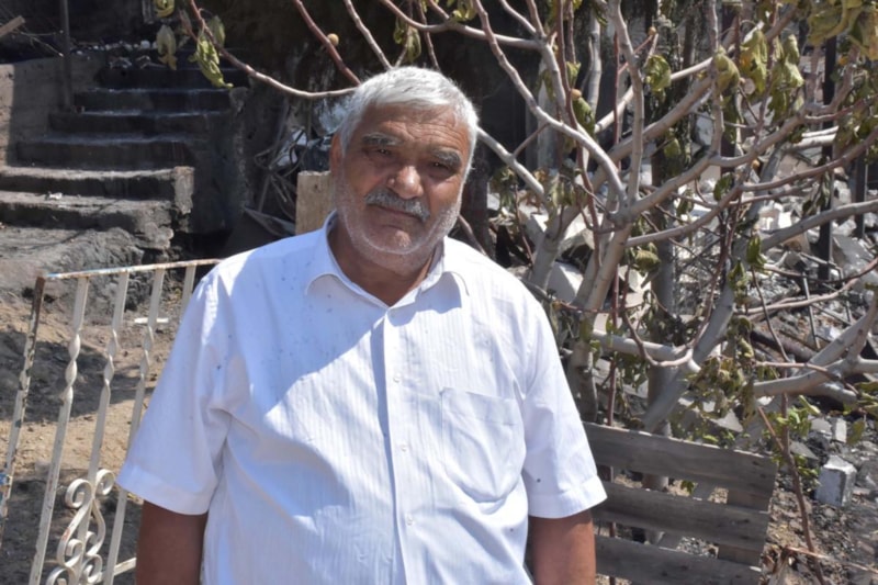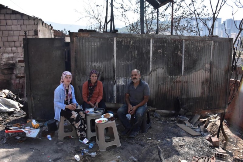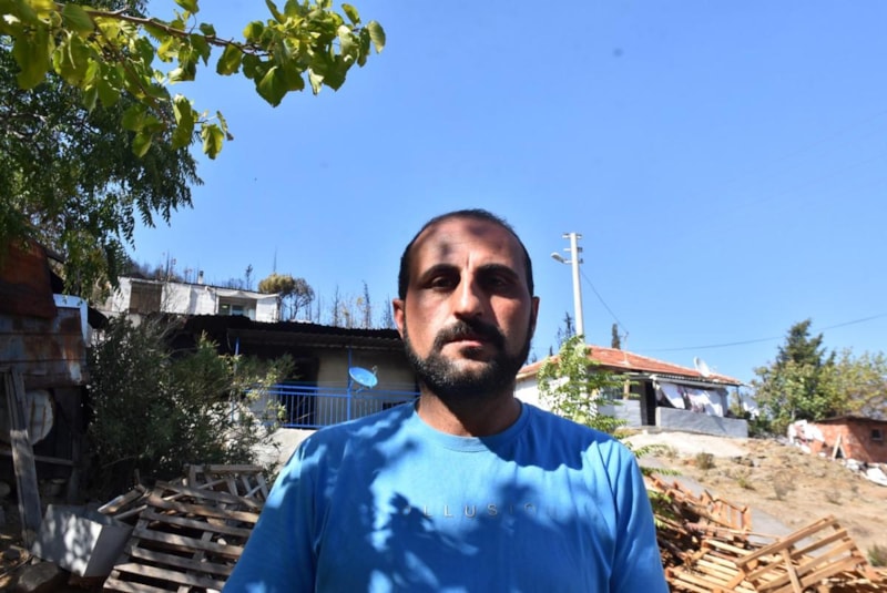 Yukarıda oğlumun evi yanıyordu. Onlara yardım için gittim, hanım aradı, evimizin yandığını söyledi. Çıktım geldim ama hiçbir şey yapamadım. Ne orayı kurtarabildik ne burayı kurtarabildik. Söndürmek için geldiler ama yollar kapalıydı, her taraf yanıyordu. Yeterli gelmedi. Arabalar yoldaki rampadan giremeyince evimizi kurtaramadık. Daha önce kirada oturuyordum. Eşim hastaydı, buradaki evimi aldım. O da şimdi yandı, kül oldu gitti. Yine yerimize izin verirlerse evimizi yapmak istiyoruz. Bir kızım ilkokula, oğlum liseye, diğer kızım da üniversiteye gidiyor. Böyle ortada kaldık. 2 gündür arabada yatıyoruz