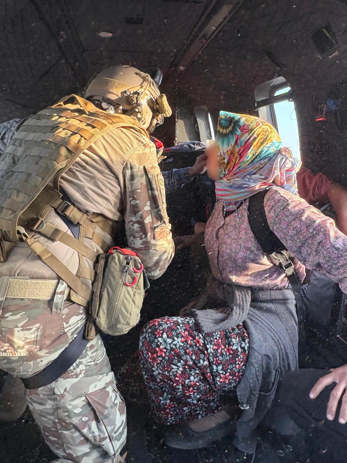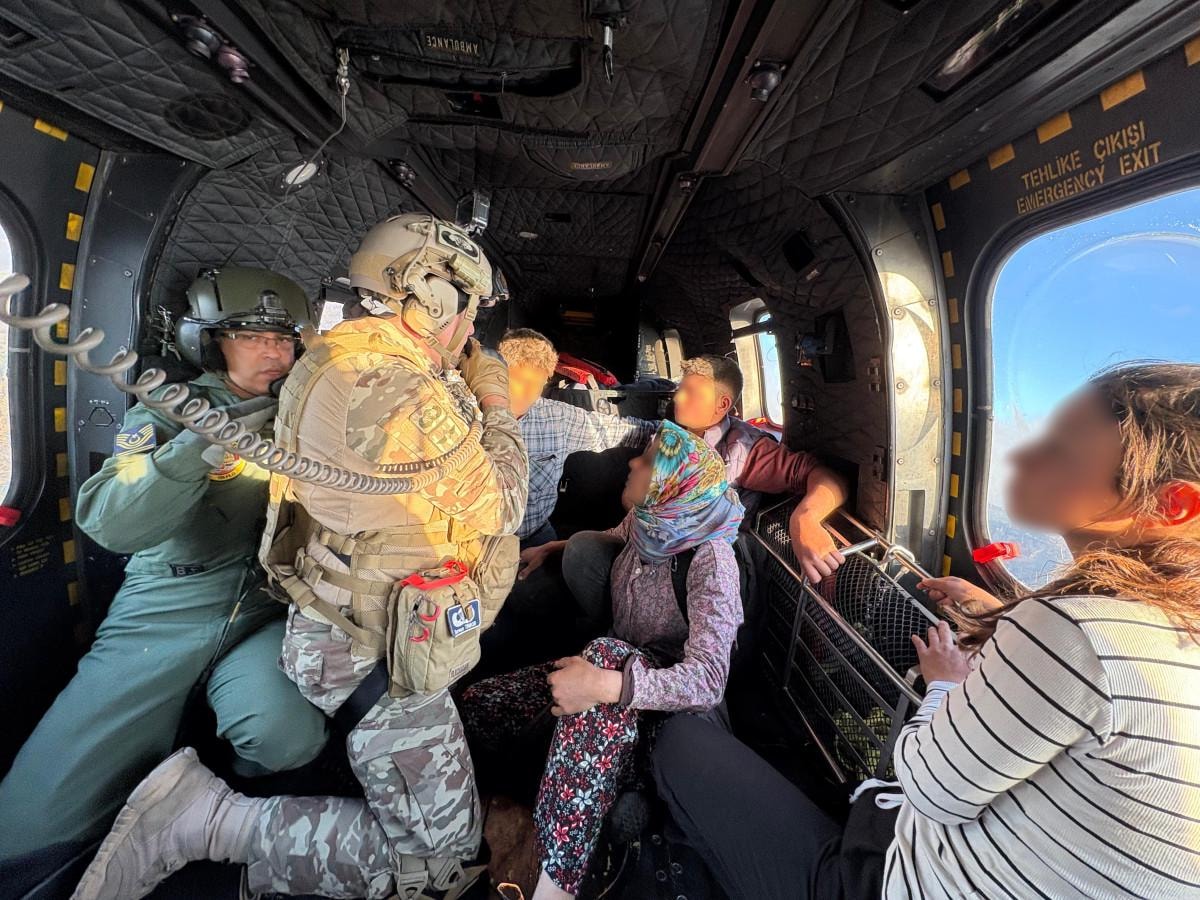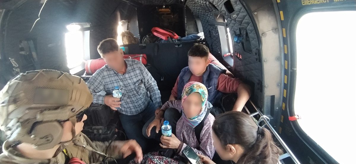 Hava Kuvvetleri personelimiz, kurtardıkları ailemizi helikopter ile güvenli bir şekilde tahliye ederek sağlık ekiplerine teslim etti.