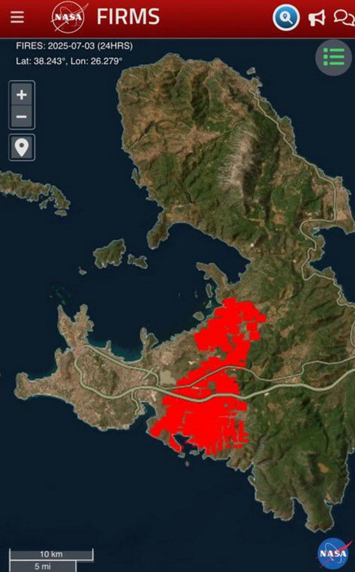 İzmir’deki yangınlar, NASA uyduları tarafından da tespit edildi.