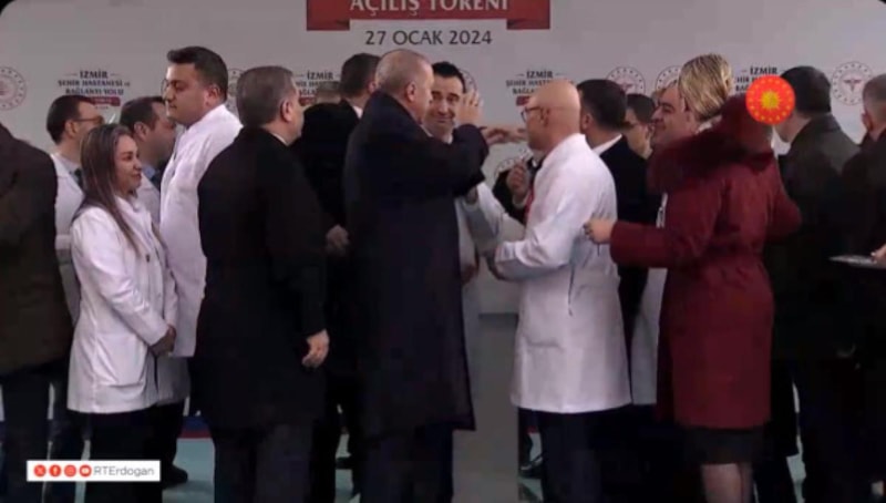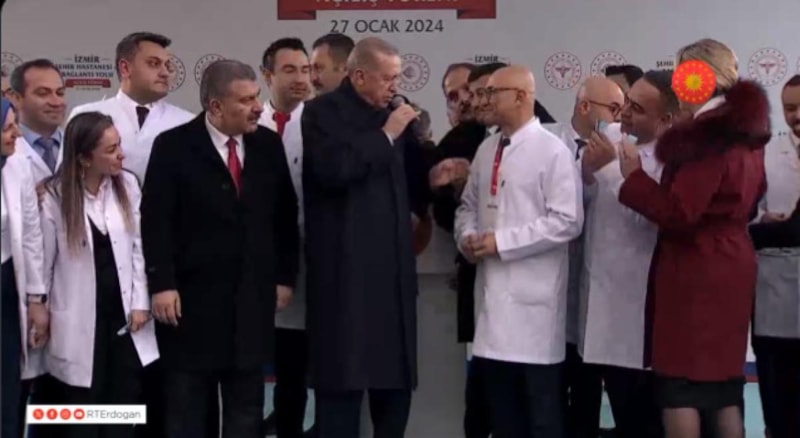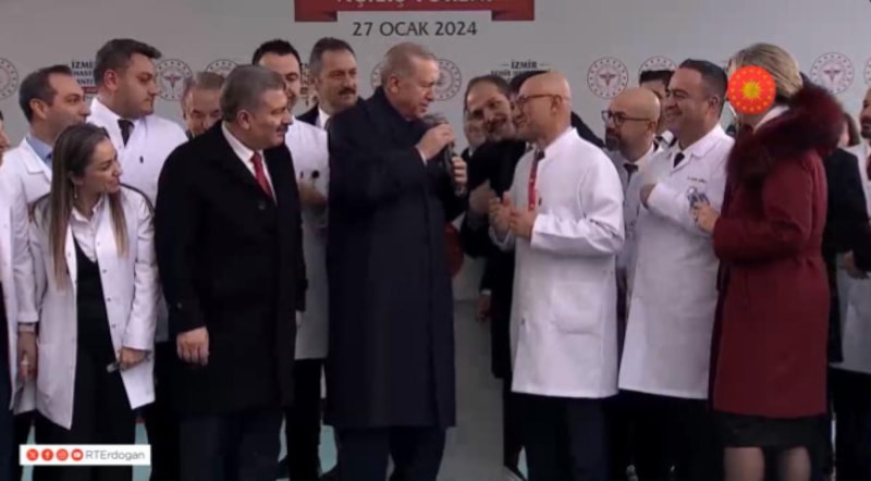 "Evet kurdelayı kesiyoruz. Ya Allah Bismillah" diyerek hastanenin resmi olarak açılışını yapan Cumhurbaşkanı Erdoğan, espiriyi patlattı.