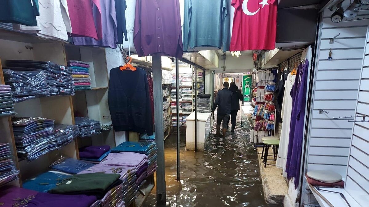 Tarihi Kemeraltı Çarşısı'ndaki bir iş hanını ise, yağmur suları nedeniyle su bastı.