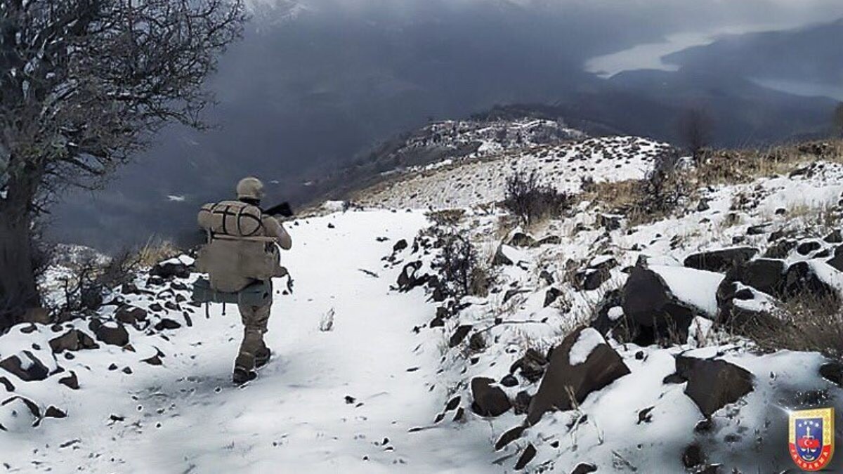Kar kış demeden görev icra eden Mehmetçik'in fotoğrafı, "Bu yol; azim ve kararlılığın, inanç ve istikrarın, huzur ve güvenin yoludur. Bu yol; hedefine emin adımlarla yürüyen, evini sırtında, vatan aşkını yüreğinde taşıyan Jandarma Komandonun yoludur." notuyla paylaşıldı.