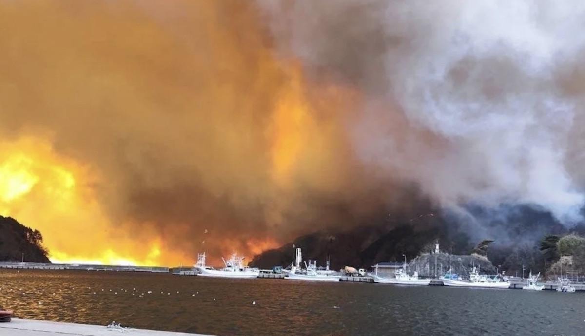 Japonya'nın Iwate eyaletindeki Ofunato şehrinde başlayan orman yangını bölgede paniğe neden oldu.