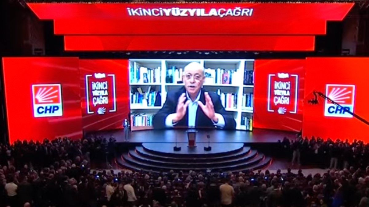 Kılıçdaroğlu'nun sahneden imesi ile ABD'den salona bağlanan Rifkin katılımcılara hitap etti.