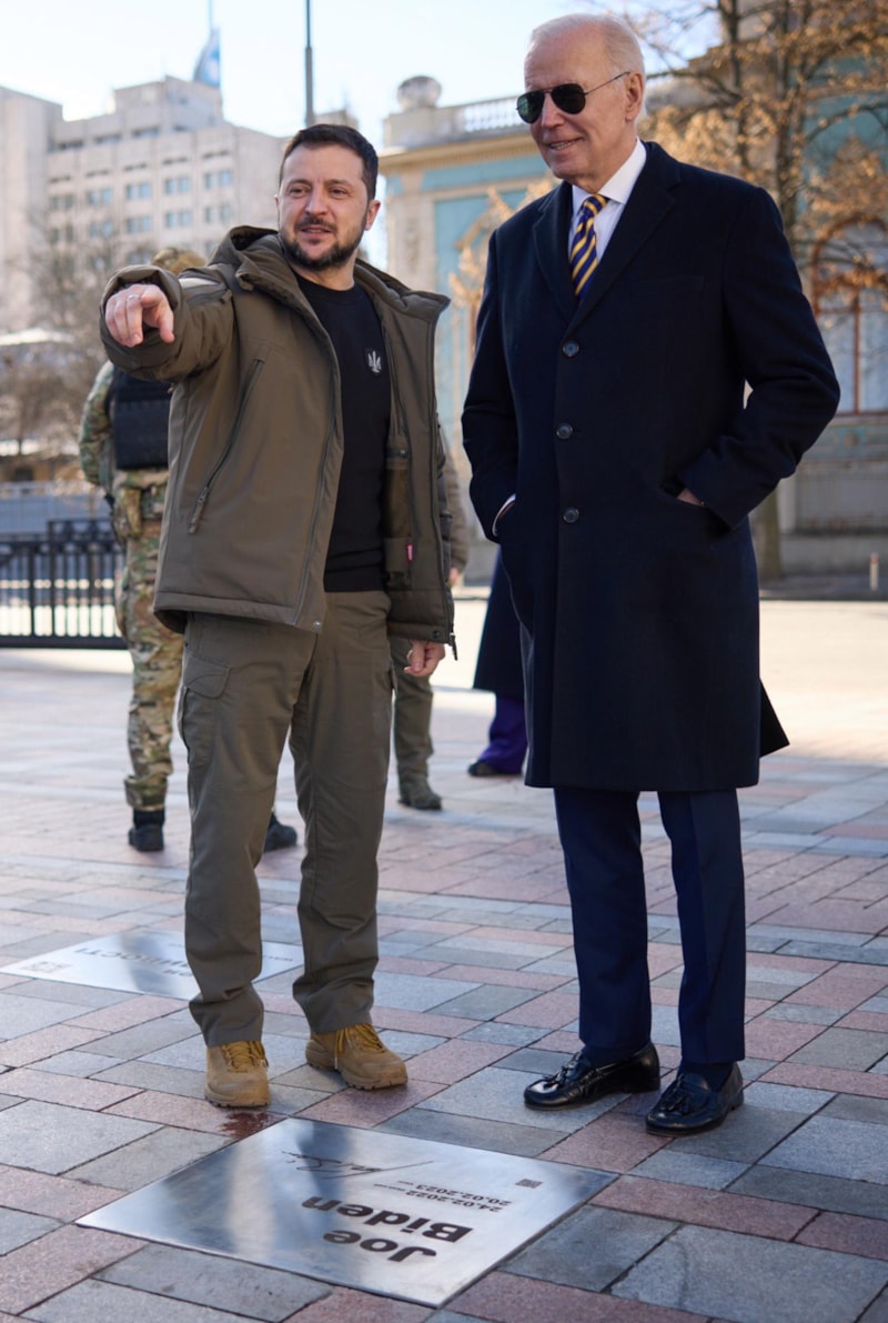 Zelensky ve Biden, daha sonra Anayasa Meydanı’nda yer alan Cesur Yürüyüş adlı alanda Biden adına yerleştirilen plaketin açılışını yaptı.