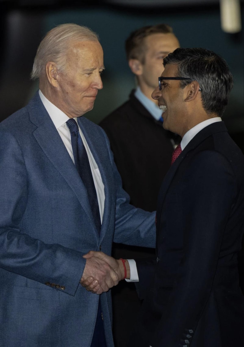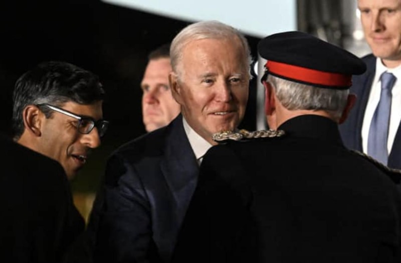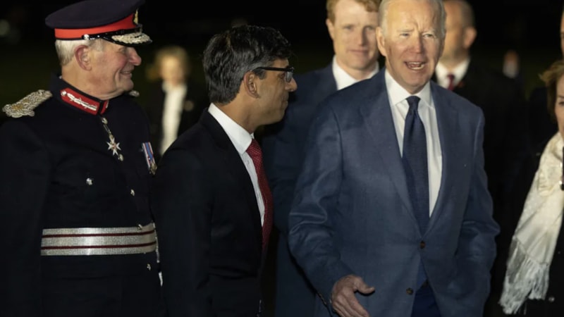 Joe Biden, kendisini karşılamaya gelen İngiltere Başbakanı Rishi Sunak'ı tanıyamadı.