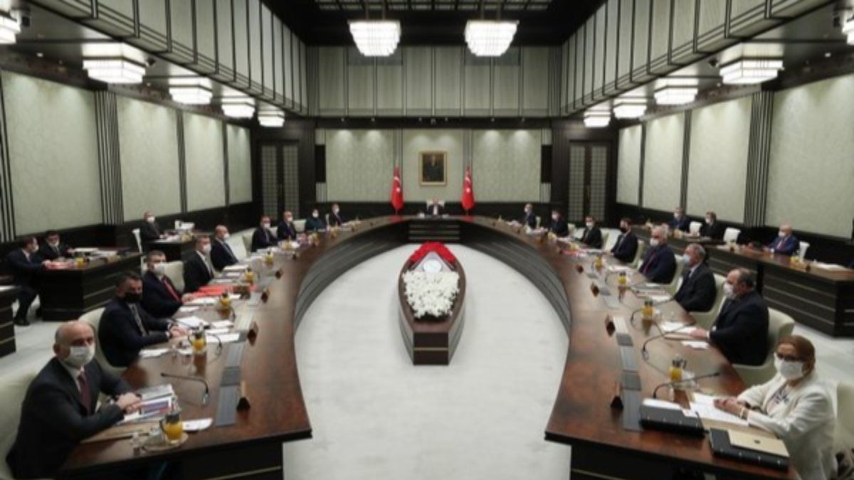 16.05'te başlayan toplantıda, Kabine üyeleri, Cumhurbaşkanı Erdoğan başkanlığında yine koronavirüs gündemiyle bir araya geldi.