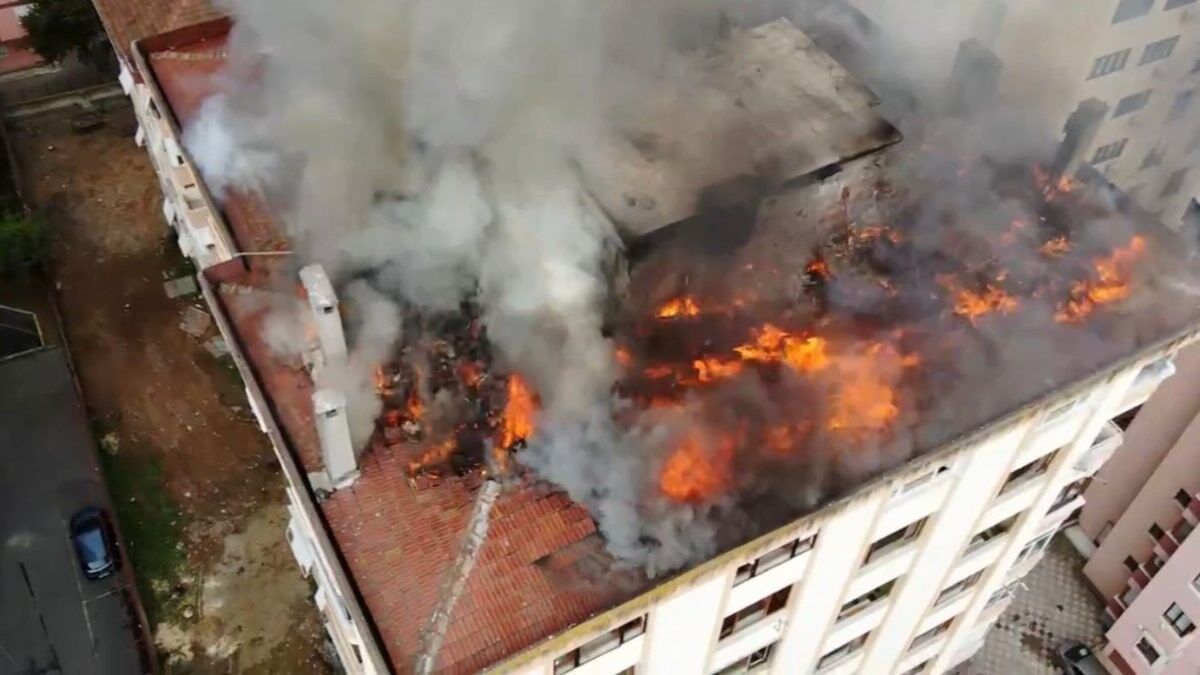 11 katlı binadaki yangında ölen ya da yaralanan olmazken binanın çatısı kullanılamaz hale geldi. Öte yandan, yangın dronla havadan görüntülendi.