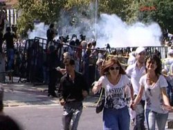 Polise sopalarla saldıran maskeli gruplara çevik kuvvet gaz bombasıyla müdahale etti. Polise molotof atan grup müdahalenin ardından dağıldı.