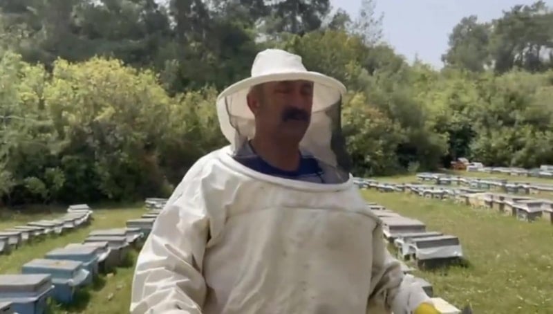 Maçoğlu, arı yetiştiriciliği yaptığı alandan bir video paylaştı.