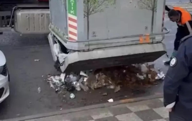 Dün biz geldiğimizde burada temizlik yapan arkadaş içeride birinin olduğunu söyledi. Biz de ekiplere haber verdik. Geldiler çıkarmaya çalıştılar. Fakat ısrarla çıkmak istemedi. Sonrasında zabıtalarla çöp arabası geldi. Çıkmadığı için mecburen üstten kaldırıp alttan çıkarmak zorunda kaldılar. Muhtemelen akli dengesi yerinde değildi. Yağmurdan dolayı girdiğini söylüyorlar. Şiddetli bir yağmur varmış. Çıktığında zaten ıslaktı. Ambulans geldi. Hırka verdik üzerine üşüyordu, titriyordu. Ayağı da şişmişti. Sonrasında ambulans götürdü.