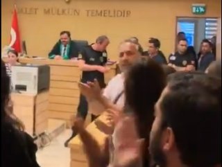 O anlar salona giren diğer avukatlar tarafından, cep telefonlarıyla kaydedilip sosyal medyada paylaşıldı.