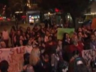 Kadınların ön saflarda yürüdüğü eylemde, erkekler de kadınlara arka saflarda yürüyerek destek verdi. Hüseyin Çelik'in açıklamasına tepki gösteren grup, Gözde Kansu'yu sloganlarıyla destekledi. Kanal önünde TOMA ve çevik kuvvet ekipleri beklerken, grubun basın açıklamasını bina önünde yapmasına izin verilmedi.Bunun üzerine grup basın açıklamısını kanalın 100 metre yakınında yaptı.