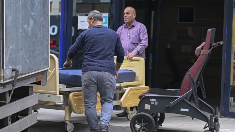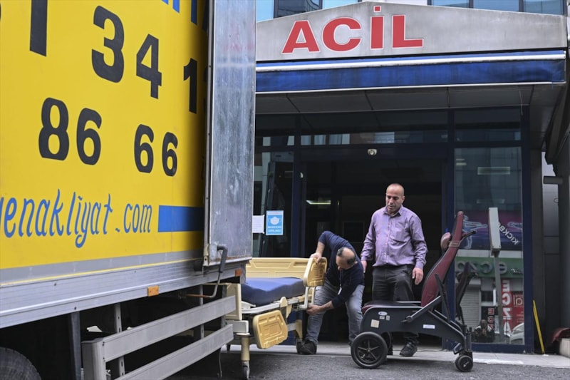 Hastanenin acil kapısı önüne getirilen kamyona yüklenen malzemeler, belirtilen yerleşkeye taşınıyor. Taşınma sürecinin yaklaşık 10 gün sürmesi bekleniyor.