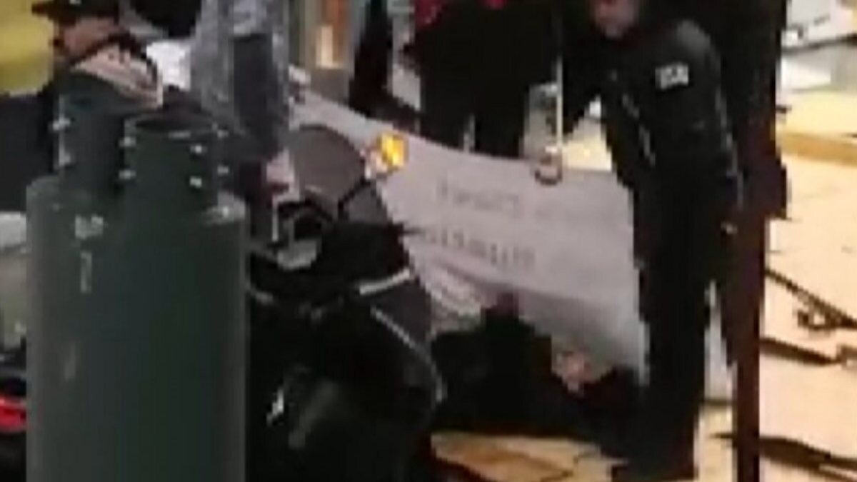 Fırtına etkisiyle bir bina çatısı, karşı kaldırımda yürüyen anne ile oğlunun üzerine düşerek bölgede paniğe neden oldu.