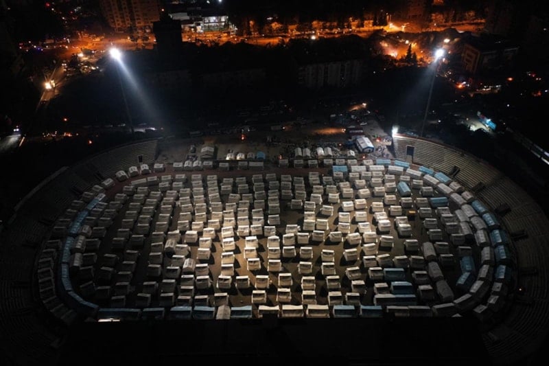 Geçici barınma alanları oluşturularak 1 milyon çadır sevk edildi ve 350 çadır kentte 645 bin çadır kuruldu.