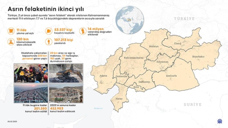Türkiye, 2 yıl önce şubat ayında 'asrın felaketi' olarak nitelenen Kahramanmaraş merkezli 11 ili etkileyen 7.7 ve 7.6 büyüklüğündeki depremleri yaşadı.