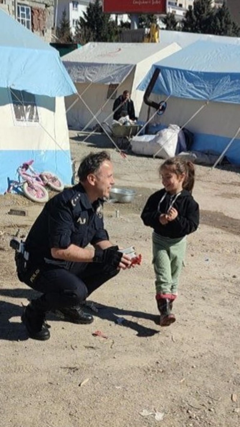 Depremzedeler için depremin merkezine giden Afyonkarahisar Emirdağ İlçe Emniyet Müdürü Erdal Yanık, sosyal medya hesabından yaptığı paylaşıma, "Çocuklarımızın etkilenmemesi için yüzlerini güldürmeye çalıştık" notunu düştü.