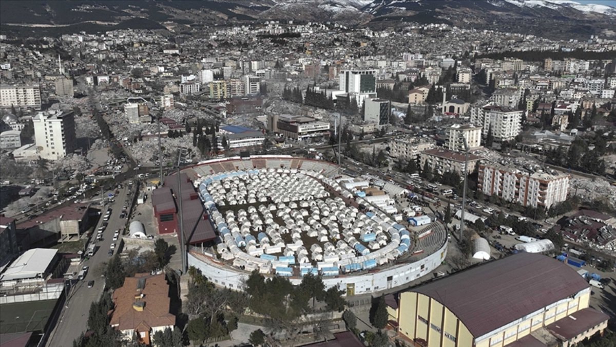 Stadın çevresindeki binalar, peş peşe meydana gelen depremlerde enkaza dönüştü.