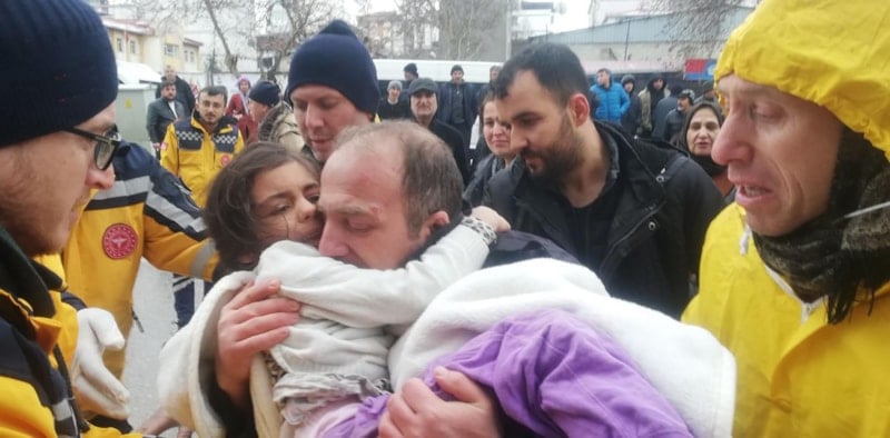 Enkaz altında kalan 5 yaşındaki çocuk, depremden 7 saat sonra canlı olarak kurtarıldı. Babasının elini bir an olsun bırakmayan minik Ayşe, kameralara yansıdı.