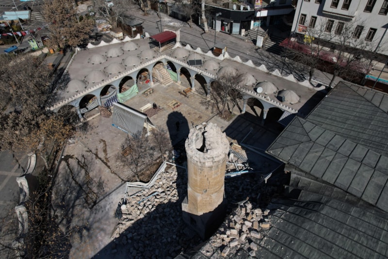 Kahramanmaraş'ta bulunan Dulkadiroğulları'ndan kalan 527 yıllık Ulu Cami, depremde hasar gördü. Hasar gören tarihi cami, drone ile görüntülendi.