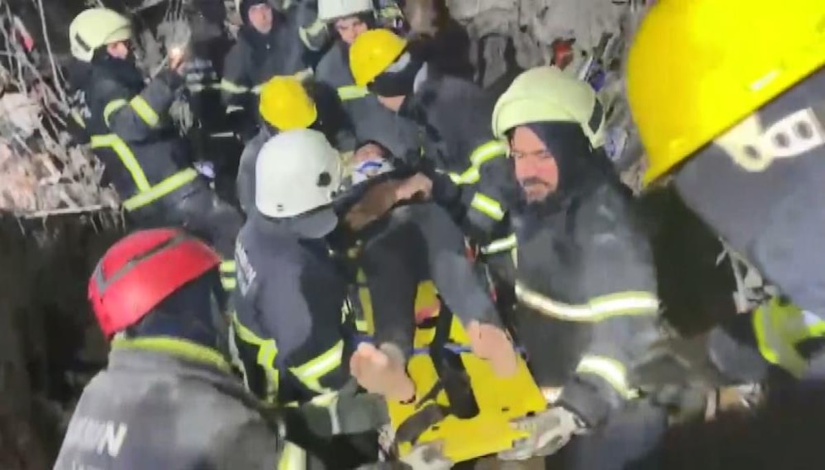 Enkaz altındaki 3 kişilik aile, 4 katlı binanın giriş katından 8 saat süren çalışmayla kurtarıldı.