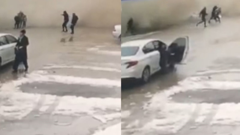 Deprem anında insanların panikle binaların olduğu bölgeden kaçmaya başlaması ve çöken binaların toz bulutları arasında kalmaları görüntülerde yer aldı.