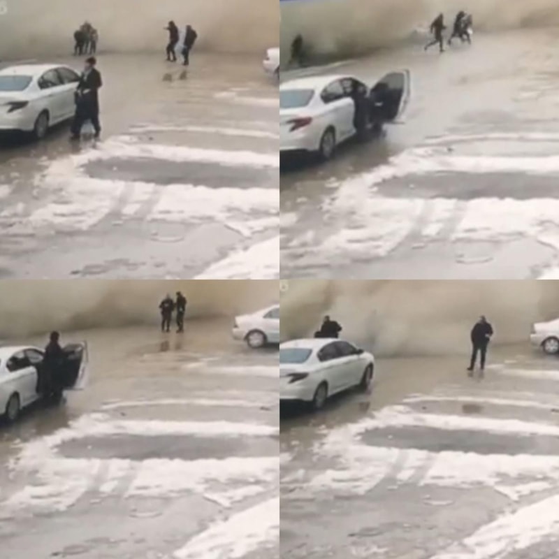 Depremden saniyeler önce araçların geçmesi, çöken binalardan ise son anda bir baba ile 2 çocuğunun kaçarak kurtulma anları görüntülere yansıdı.