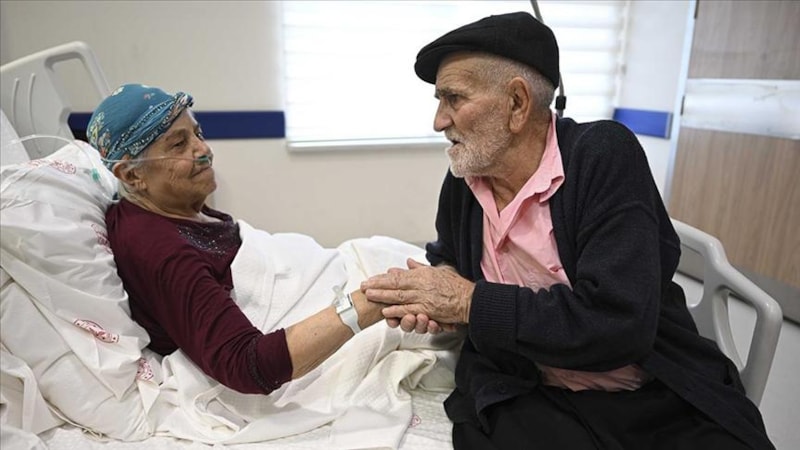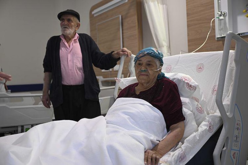 79 yaşındaki Fatma Kundakçı, deprem sonrası yaşadığı sağlık sorunları nedeniyle Mamak Devlet Hastanesi'nde tedavi altına alınırken, 83 yaşındaki eşi Mahmut Kundakçı da hastanede kendisini bir an olsun yalnız bırakmadı.