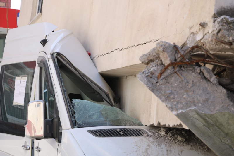 Binlerce evi enkaza çeviren depremlerin ardından merkez üssü Kahramanmaraş'ta park halindeki bir minibüs çöken binayı ayakta tuttu. Yıkılmayan binadan 6 aile kurtuldu.