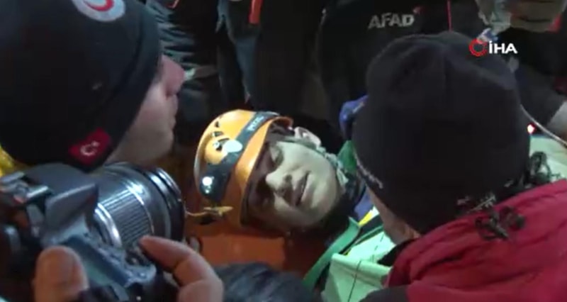 Gencin ilk sorusu “Bugün günlerden ne?” ve ilk isteği ise “su” oldu. Ekipler genci enkazdan 119 saat sonra sağ olarak kurtardı. Yürekleri ısıtan haber ekiplerin omzunda sevinç nidaları gönderildi.