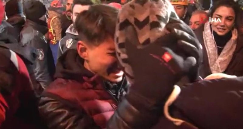 Öte yandan dayısı Haluk Besin, enkazdan sağ çıkarılan yeğeni Kamil Can'a sarılıp öptü.