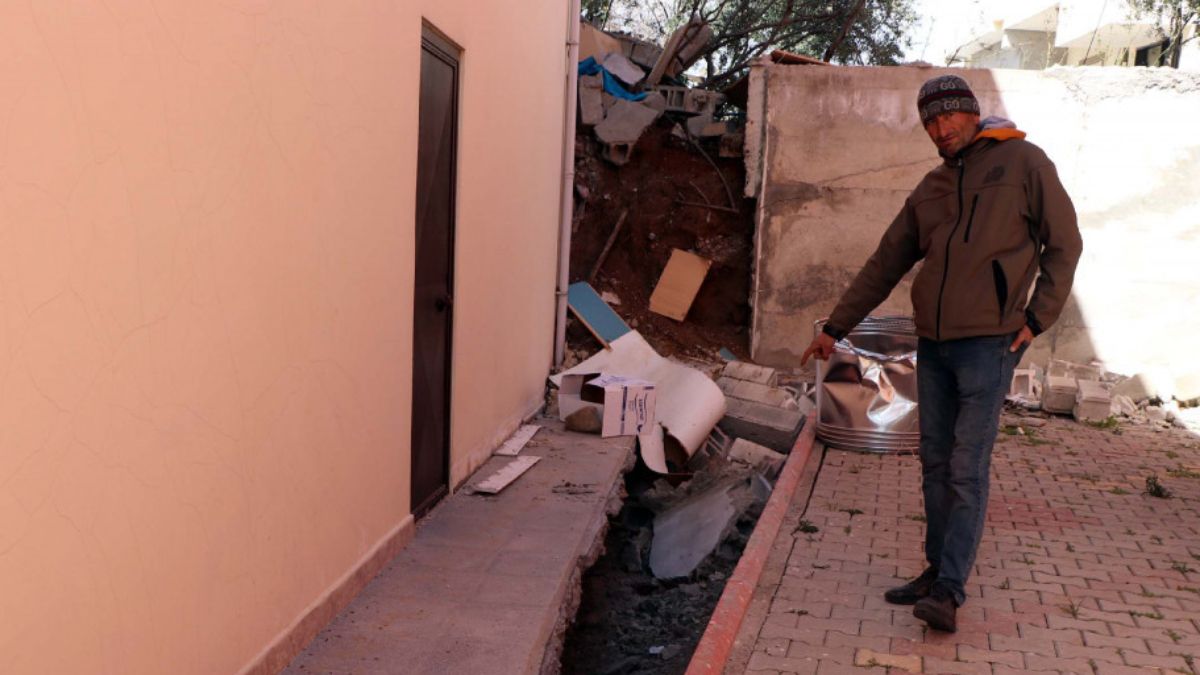Fay hattı, binanın önündeki bahçeyi çökertirken, altında da boşluk oluştuğu gözlendi.