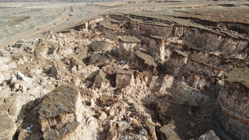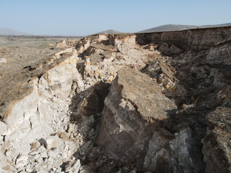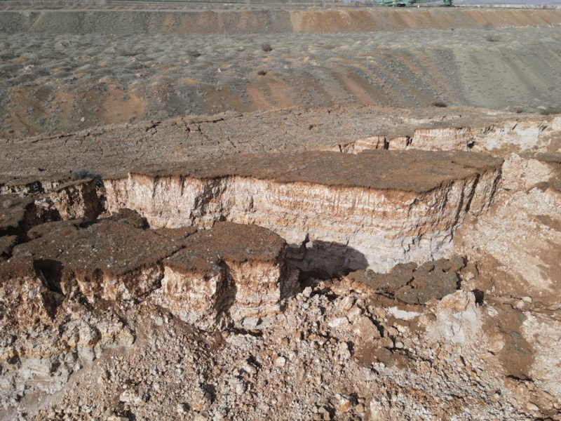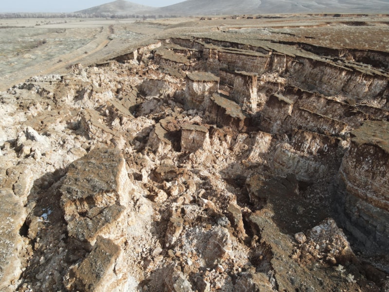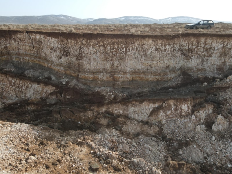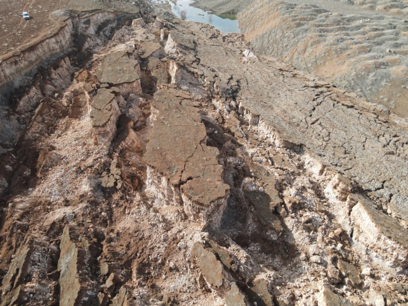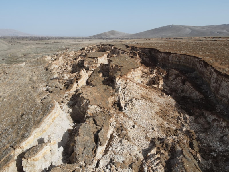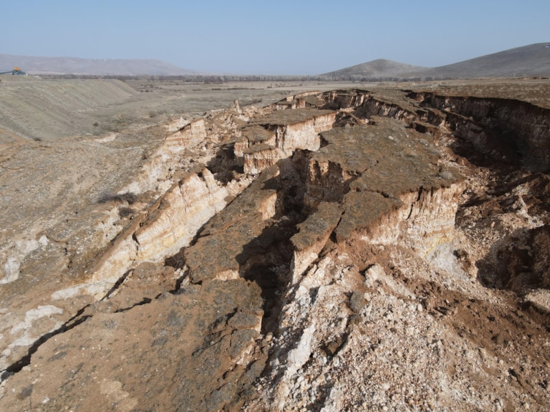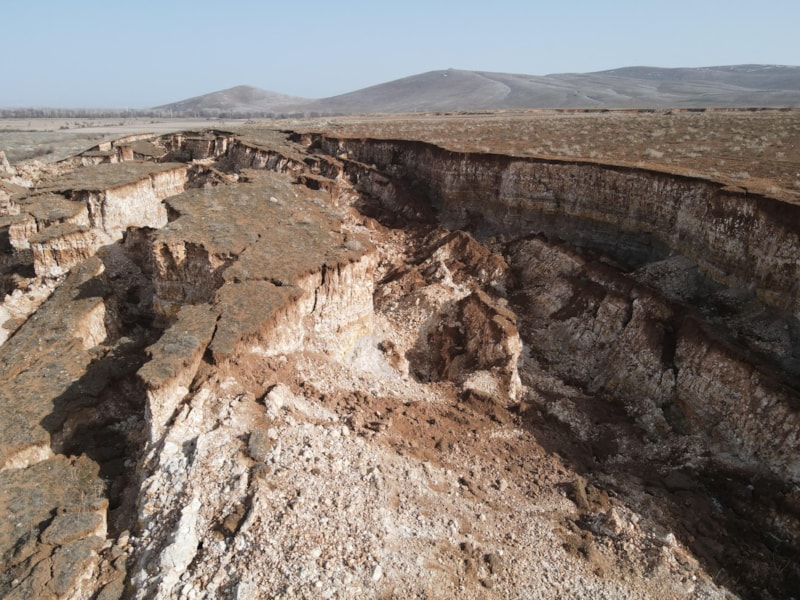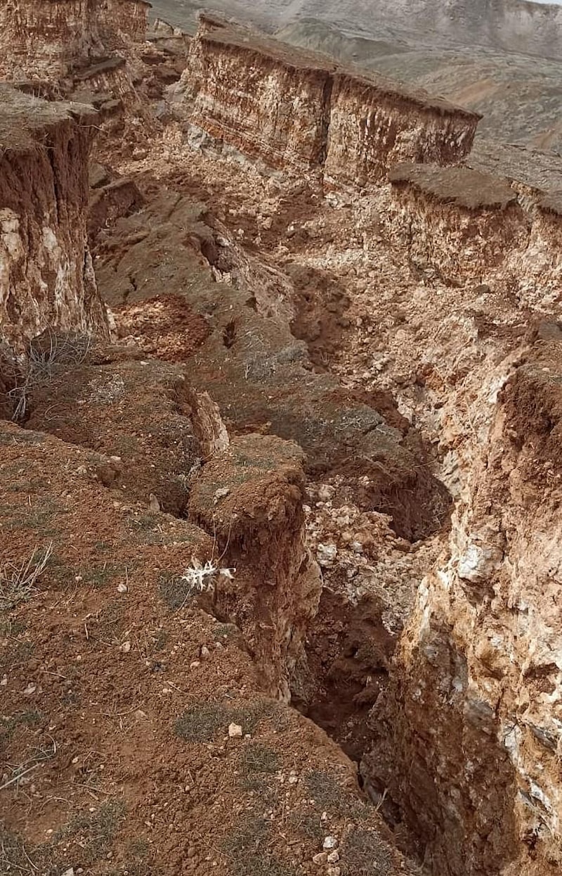 Kırsal bölgedeki arazide, hem devasa bir göçük oluştu hem de derin yarıklar ortaya çıktı.